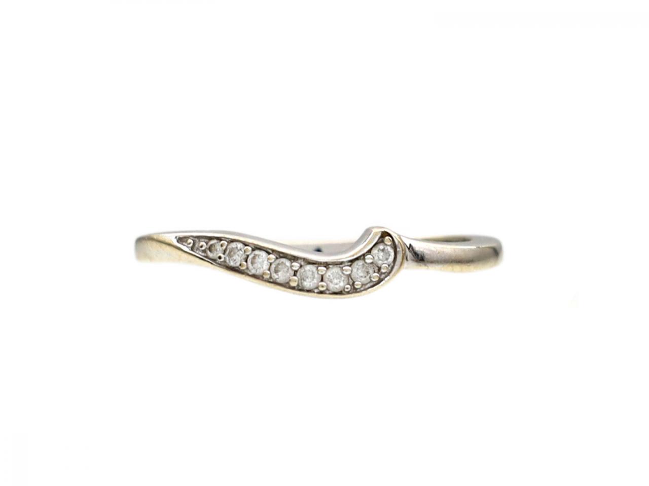 18kt white gold sweeping diamond set ring. Set with eight eight cut diamonds in grain settings, to a undulating band with polished inner and smooth shank. Hallmarked 18kt gold, Birmingham.