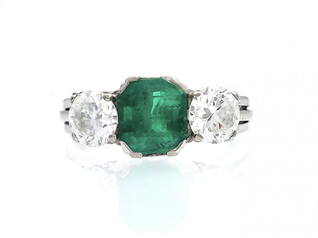 1940s three stone emerald and diamond ring 1940s three stone emerald and diamond ring 1940s three stone emerald and diamond ring 1940s three stone emerald and diamond ring