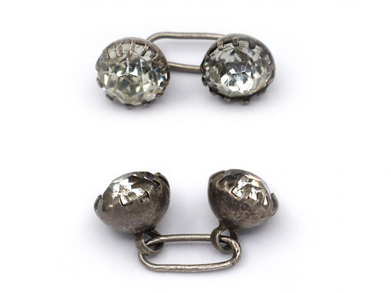 Antique sterling silver and paste cufflinks. A matching pair of double ended cufflinks set with round mixed cut paste in claw settings.