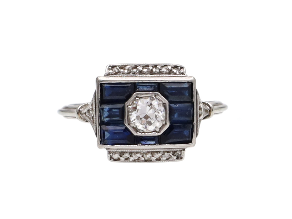 Art Deco diamond and sapphire square target ring in platinum Art Deco diamond and sapphire square target ring in platinum Art Deco diamond and sapphire square target ring in platinum Art Deco diamond and sapphire square target ring in platinum