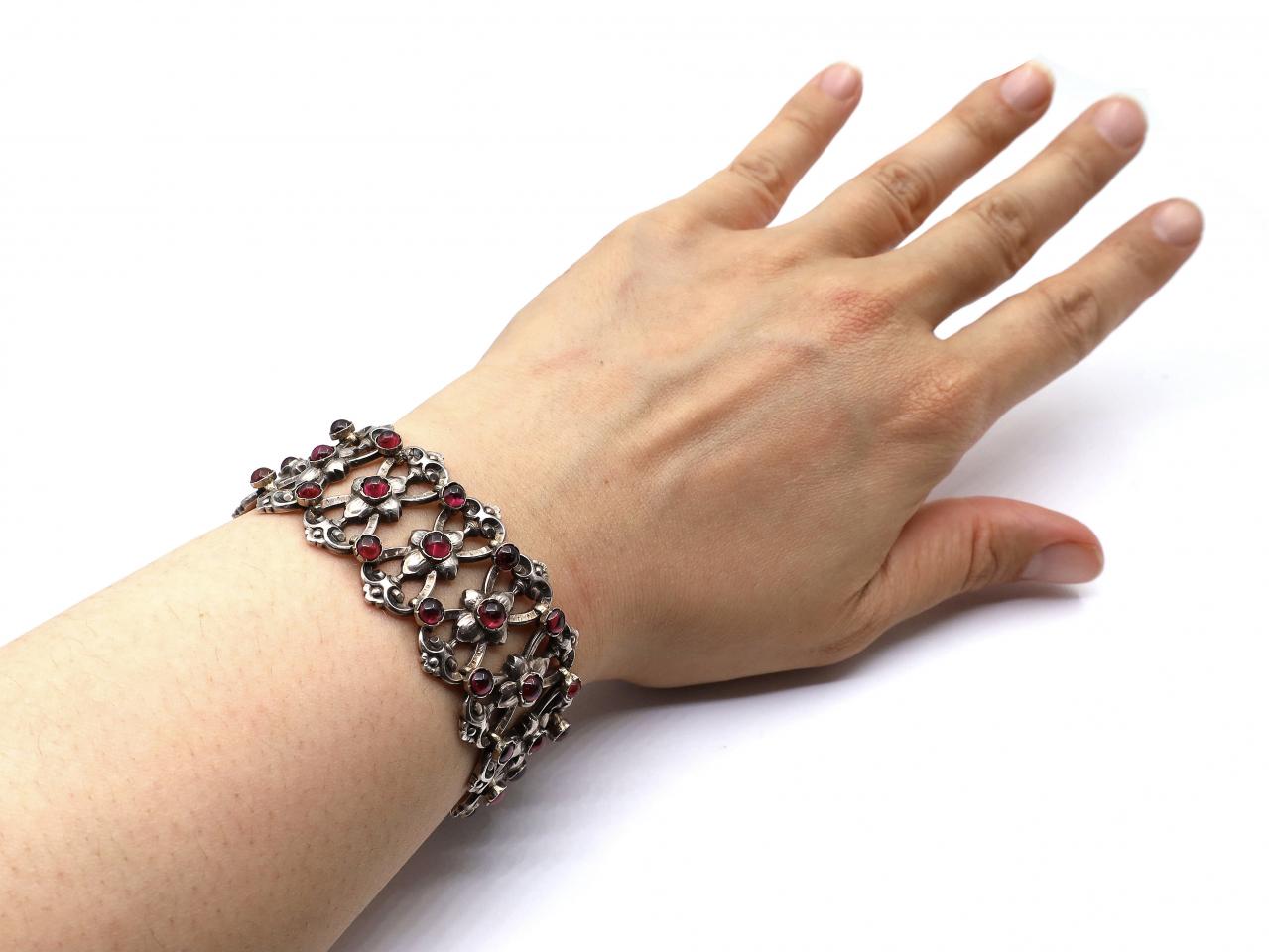 French Art Nouveau silver and gold openwork bracelet set with garnets French Art Nouveau silver and gold openwork bracelet set with garnets French Art Nouveau silver and gold openwork bracelet set with garnets