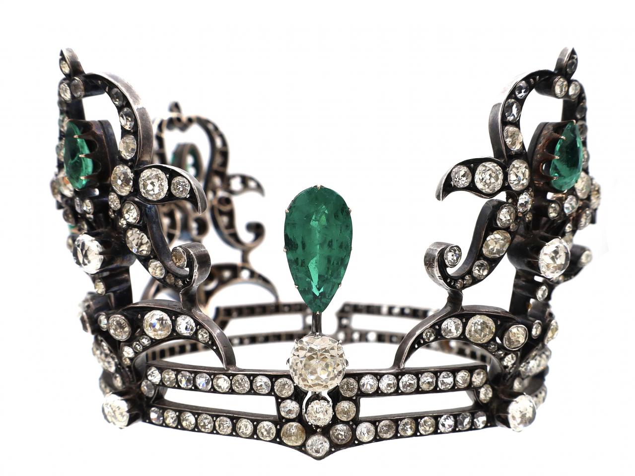 French Regency period silver coronet set with green and white paste.